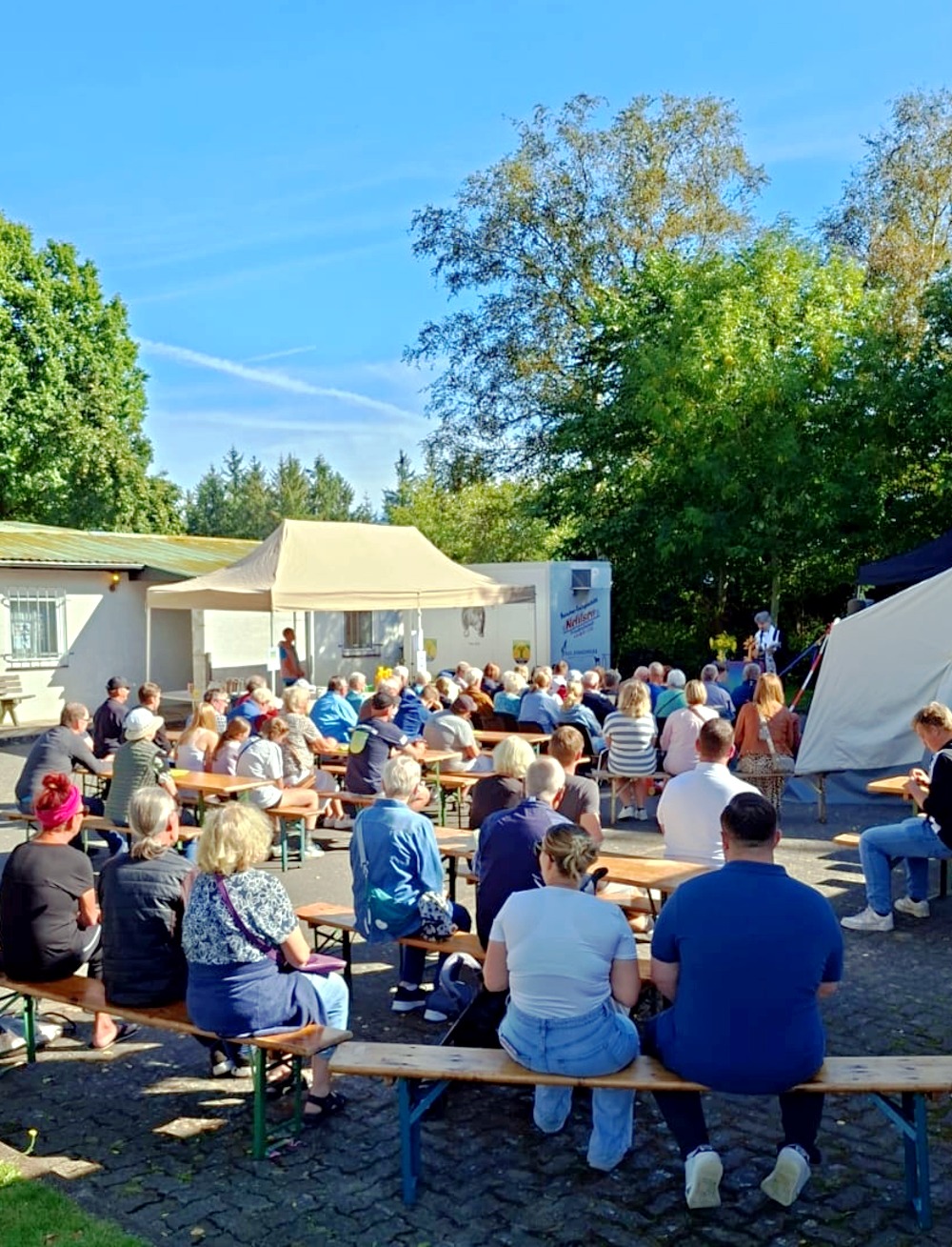 Um 11.00 Uhr eröffnete der stellvertretende Bürgermeister Olaf Buchholz die Veranstaltung. Im Anschluß gab es bei strahlendem Sonnenschein ein Open Air Gottesdienst mit Pastor Balzer, Martje Kööb trug einen Psalm vor und Tanja Arp-Götze die Lesung.