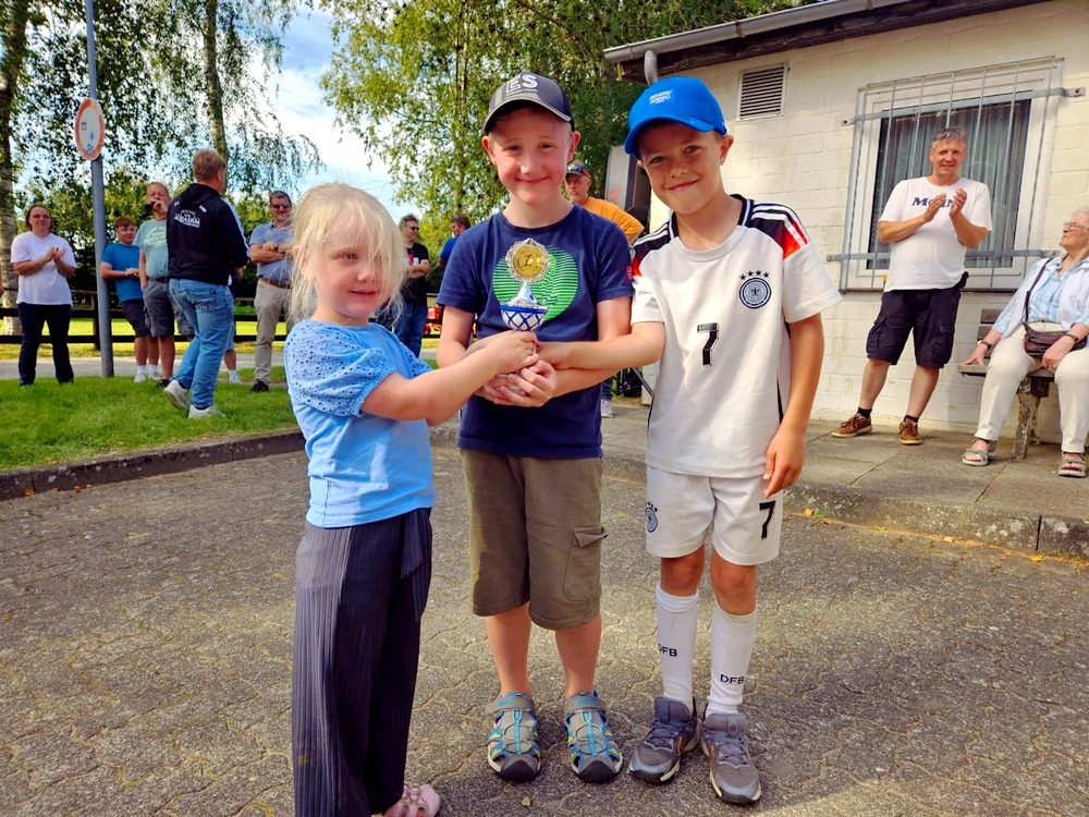 10 Mannschaften a‘ 3 Personen beteiligten sich am Spiel ohne Grenzen(Blasrohrschiessen,Skilaufen,Rundballen Rollen,Fußballdart,Wasserschwammspiel). Hierbei bekamen die Kleinsten einen Pokal sowie die Griller und Männer e.V. ebenfalls.